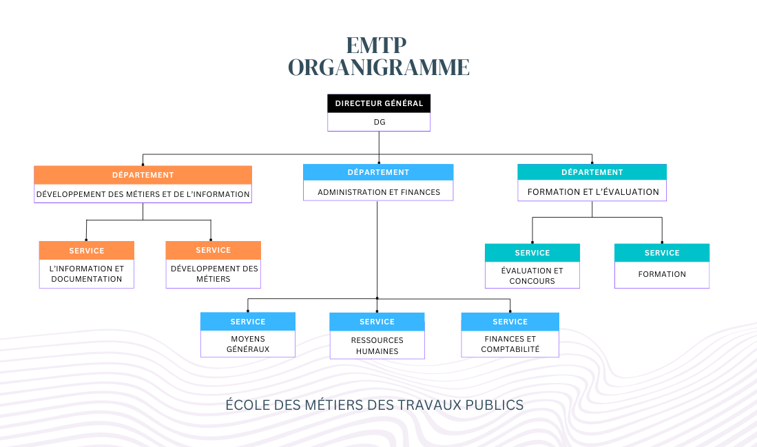 L'École des Métiers des Travaux Publics (EMTP) est un établissement à caractère industriel et commercial (EPIC) qui relève du Ministère des Travaux Publics et Infrastructures de Base, spécialisé dans la formation continue et le recyclage, ayant pour objectif de développer les qualifications et les compétences du personnel responsable de la réalisation, de la maintenance, du contrôle et du suivi de la qualité des infrastructures et ouvrages liés aux travaux publics.
