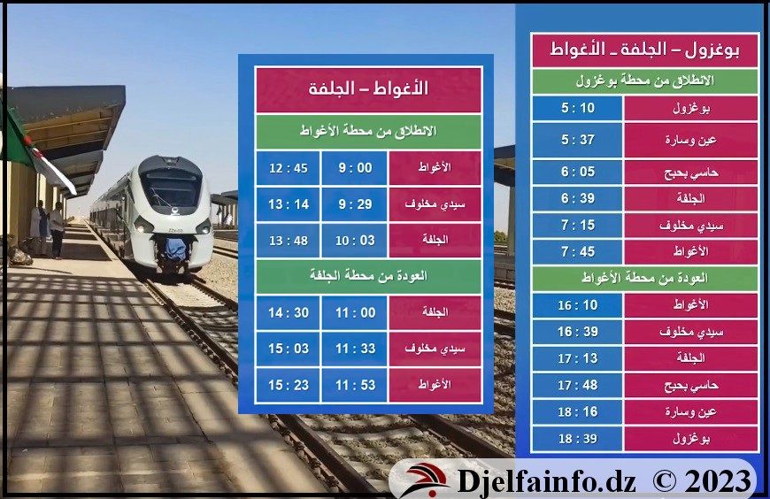 Les horaires du train reliant Boughzoul – Djelfa – El Oued